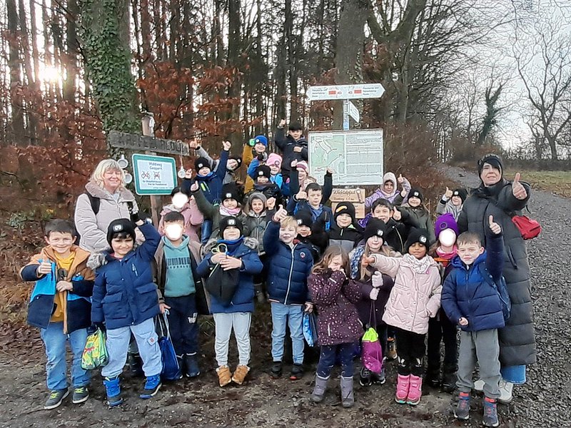 Alle Kinder der Klasse 1a und 1b wanderten mit ihren Klassenlehrerinnen, der Schulsozialarbeiterin und dem Schulhund auf dem Wichtelpfad. Mit großer Freude suchten die Kinder die vielen Wichtel und halfen sich gegenseitig beim Entdecken. Am Ende kamen wir auf 92 Wichtel, auch wenn zwischendurch der Überblick bei einzelnen verloren ging, und dies nicht nur bei den Kindern. Eine schöne gemeinsame Aktion kurz vor den Weihnachtsferien und ein lautes Dankeschön an alle Wichtelgestalter und helfenden Hände, die beim Einzug der Wichtel im Wald geholfen haben.